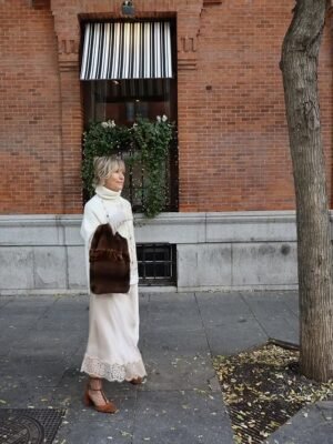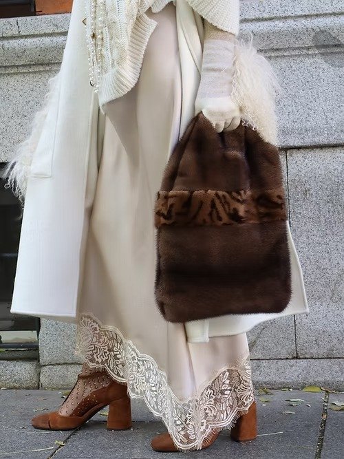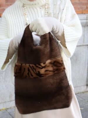 Bolso de visón marrón con franja animal print.