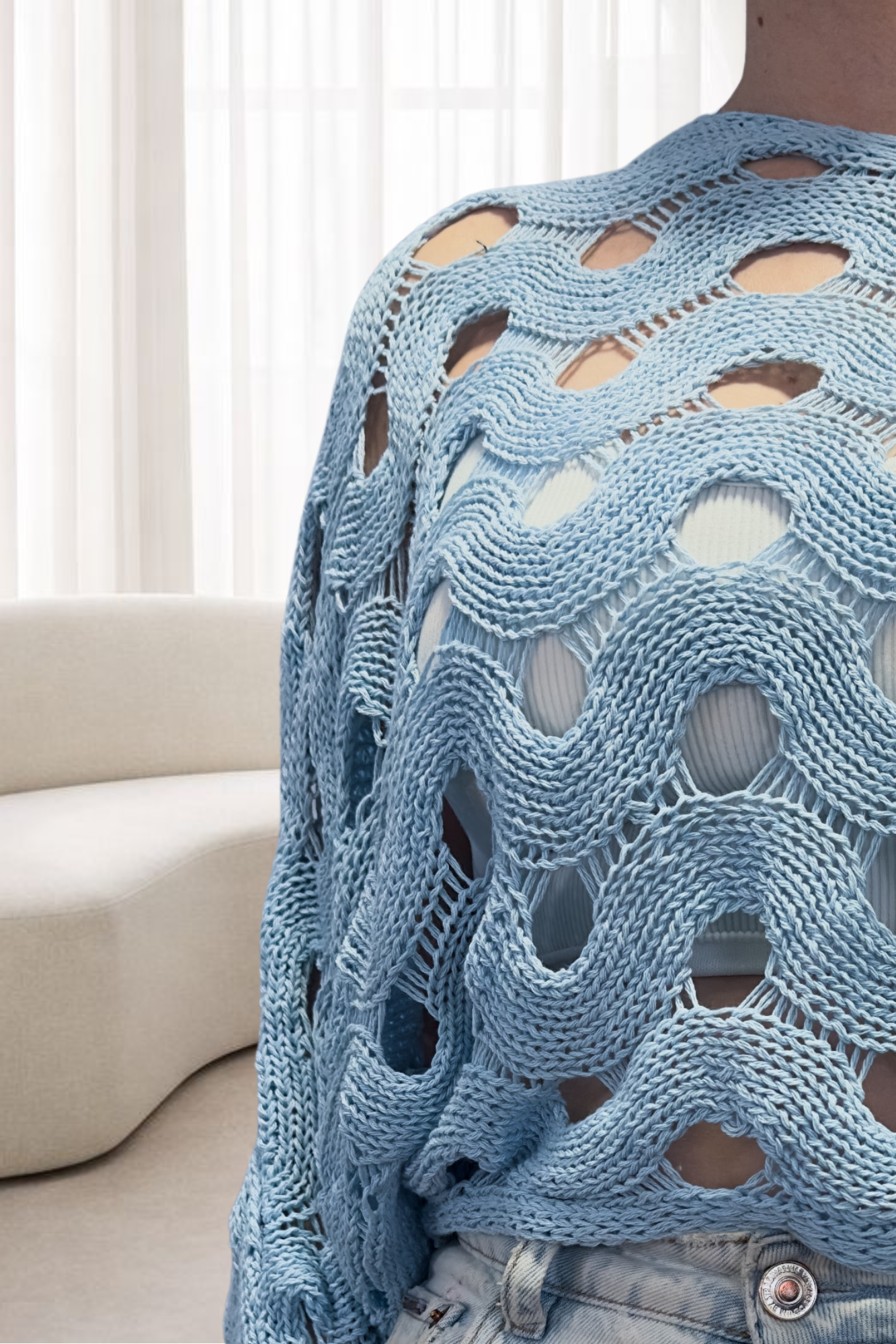 En OH.LA, nuestra misión es acompañar a cada mujer ofreciéndole prendas que celebren su autenticidad y bienestar. Este suéter de punto calado ha sido diseñado para realzar la belleza real sin disfrazar, proporcionando una sensación de seguridad y elegancia en el día a día. El juego de transparencias del calado invita a la superposición creativa, permitiendo que cada mujer exprese su estilo personal con sensibilidad. Queremos que vestirse sea un acto de bienestar, donde la comodidad de las fibras naturales y el diseño sofisticado se unan para acompañarte en tu momento presente.